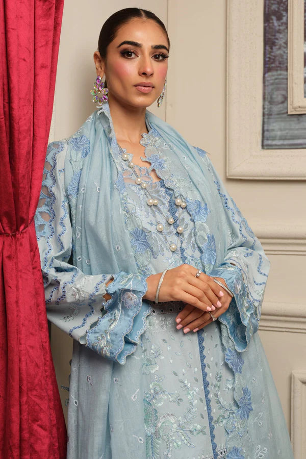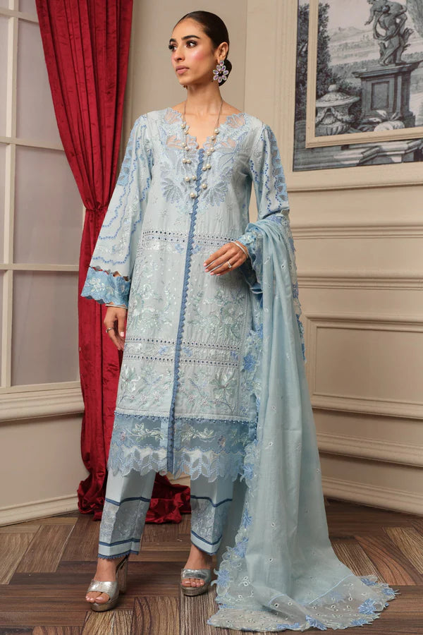 3pc Embroidered Lawn with Embroidered Cotton Net Dupatta & Cotton Trouser.