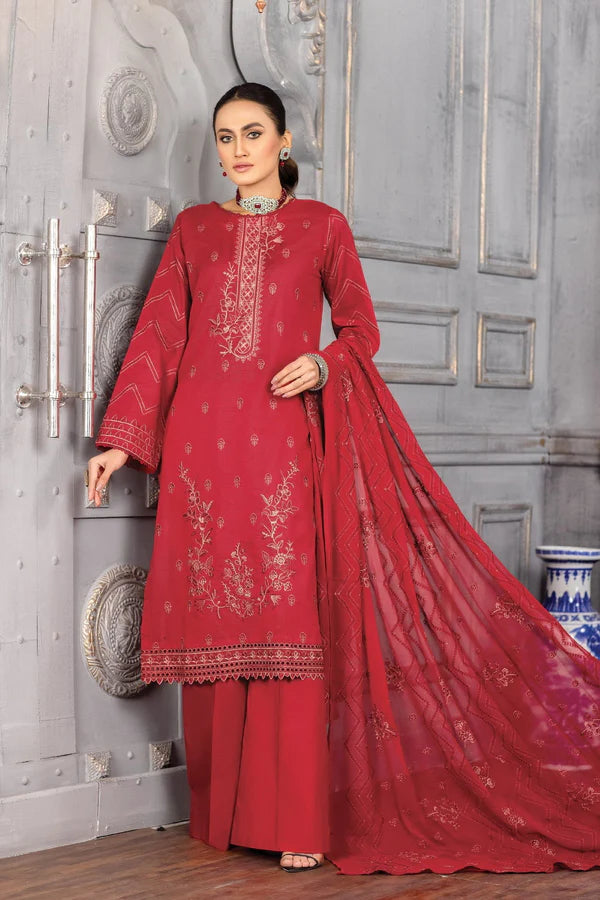 3pc Embroidered Lawn with Crinkle Chiffon Dupatta & Cotton Trouser.