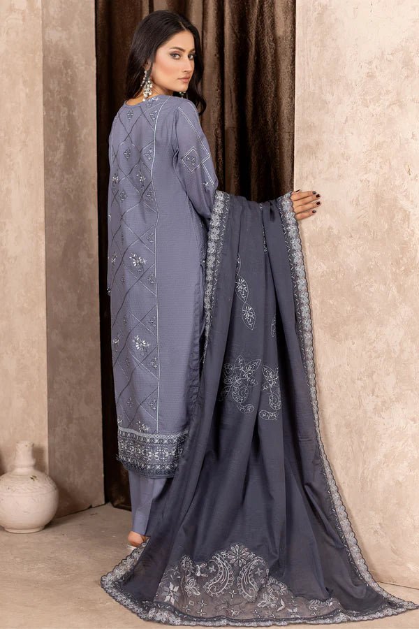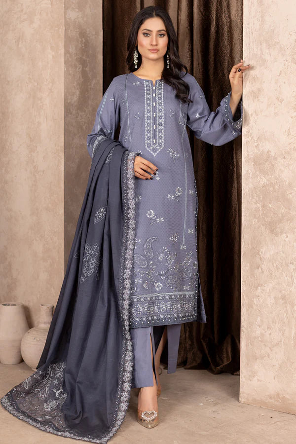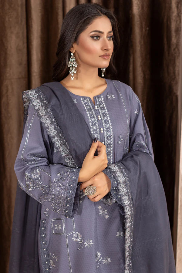 3pc Embroidered Doria Lawn with Patch Work Dupatta & Cotton Trouser.