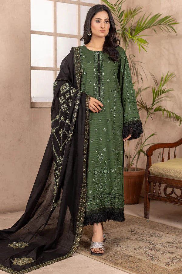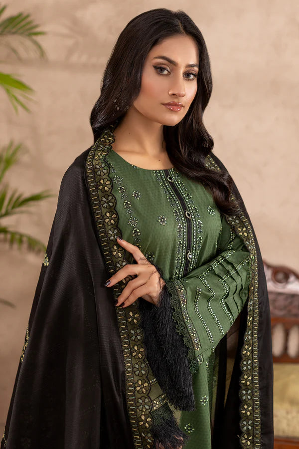 3pc Embroidered Doria Lawn with Patch Work Dupatta & Cotton Trouser.