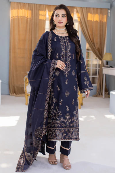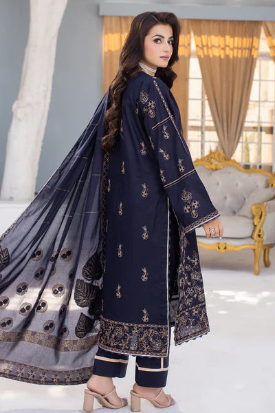 3pc Embroidered Lawn with Lawn Jacquard Dupatta & Cotton Trouser.