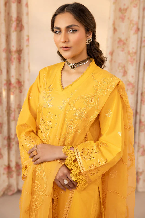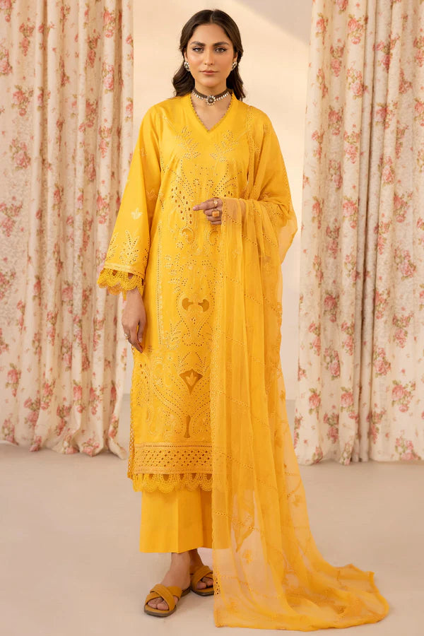 Luxury 3pc Chicken Kari Lawn with Crinkle Chiffon Dupatta & Cotton Trouser.