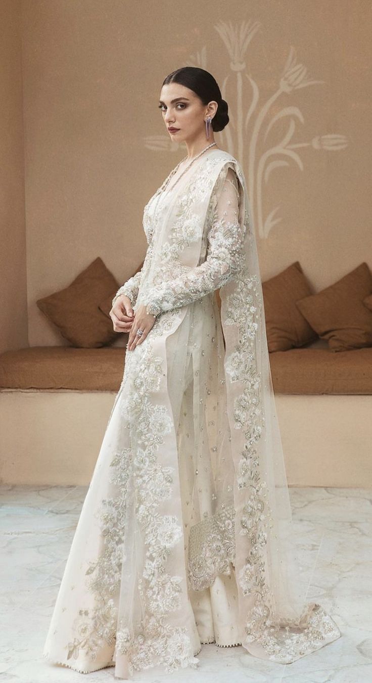 Elegance personified! Check out this stunning white formal dress with intricate floral embroidery, perfect for weddings, formal events, or any special occasion. Featuring long sleeves, a square neckline, and a matching shawl for added sophistication. Pair it with statement jewelry for a show-stopping look.