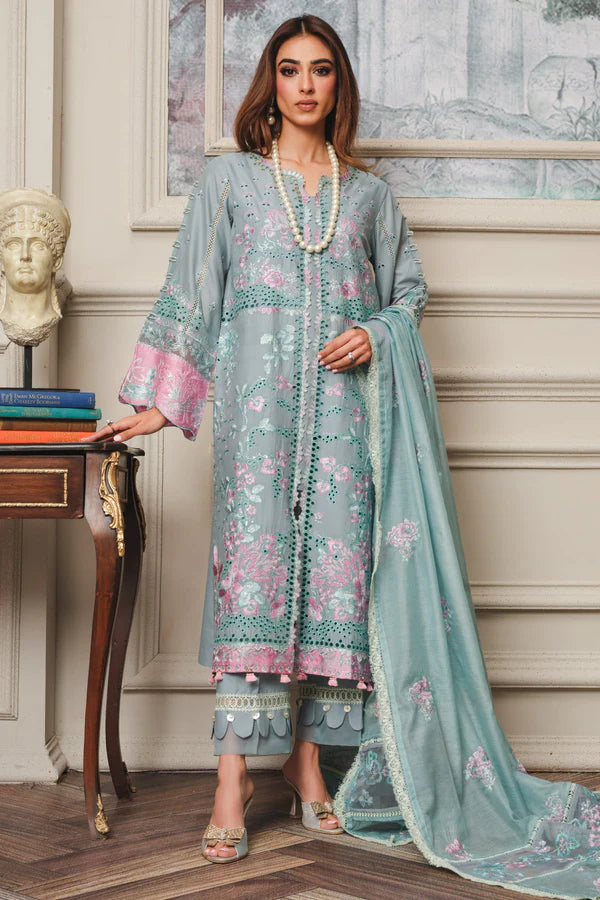 3pc Embroidered Lawn with Embroidered Cotton Net Dupatta & Cotton Trouser.
