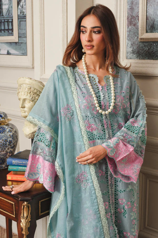 3pc Embroidered Lawn with Embroidered Cotton Net Dupatta & Cotton Trouser.