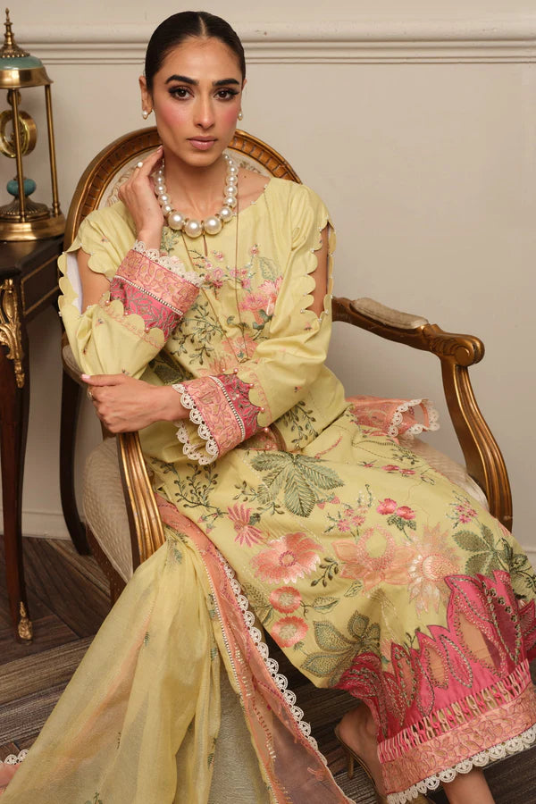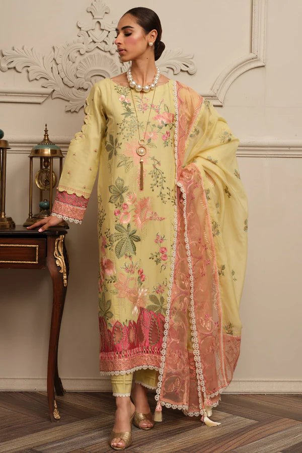 3pc Embroidered Lawn with Embroidered Cotton Net Dupatta & Cotton Trouser.
