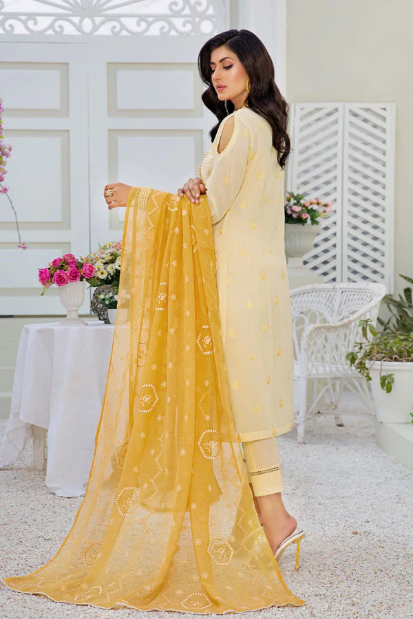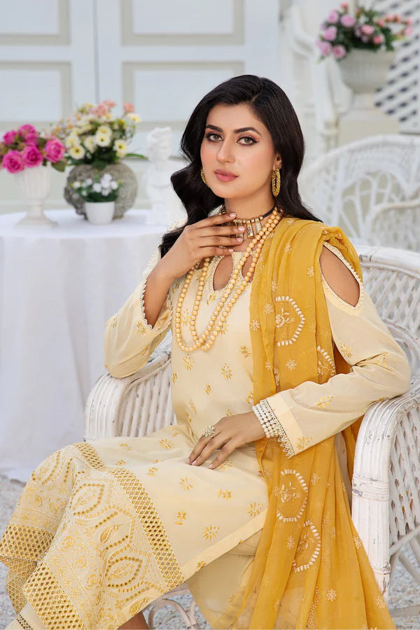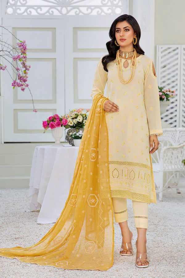 3pc Embroidered Swiss Lawn with Crinkle Chiffon Dupatta & Cotton Trouser.