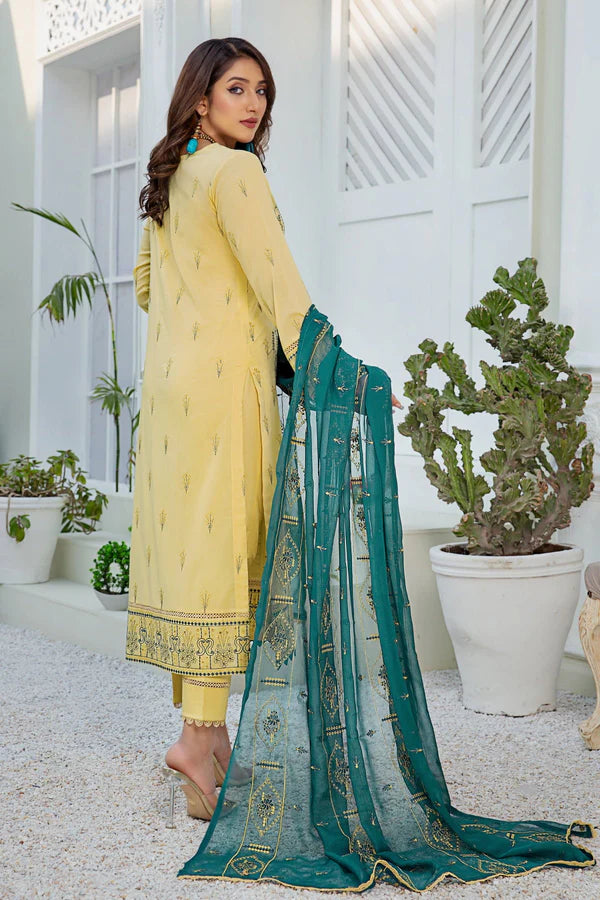 3pc Embroidered Swiss Lawn with Crinkle Chiffon Dupatta & Cotton Trouser.