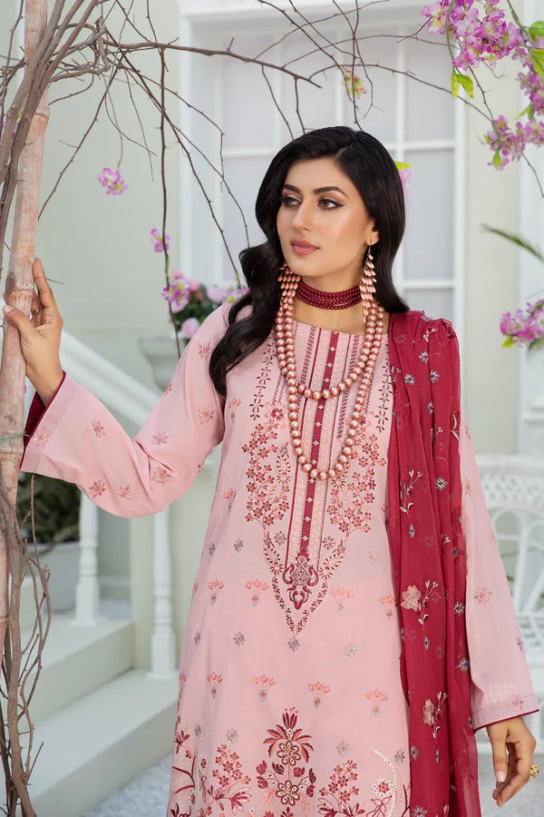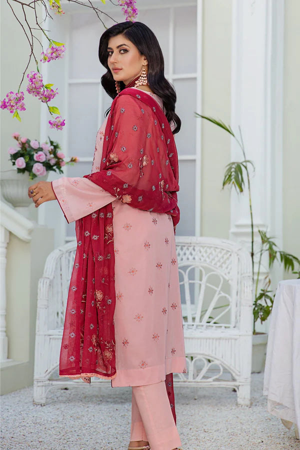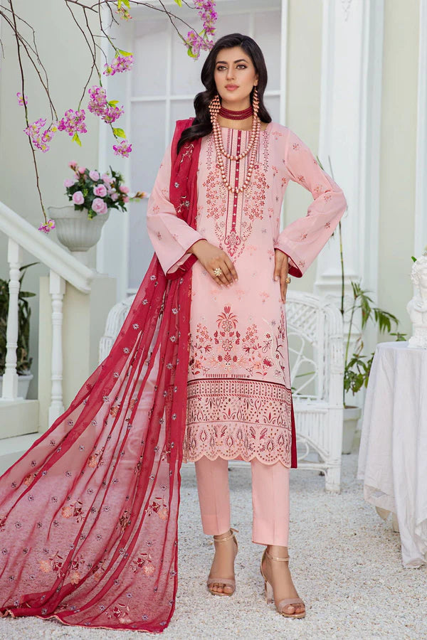 3pc Embroidered Swiss Lawn with Crinkle Chiffon Dupatta & Cotton Trouser.
